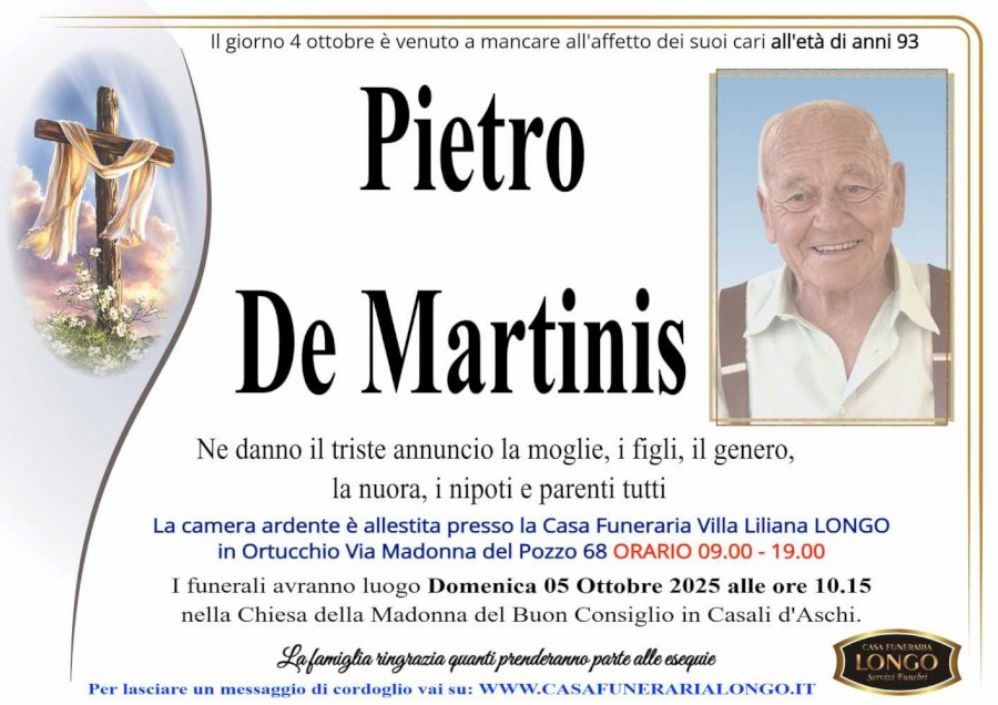 Ne danno il triste annuncio la moglie, i figli, il genero, la nuora, i nipoti e parenti tutti