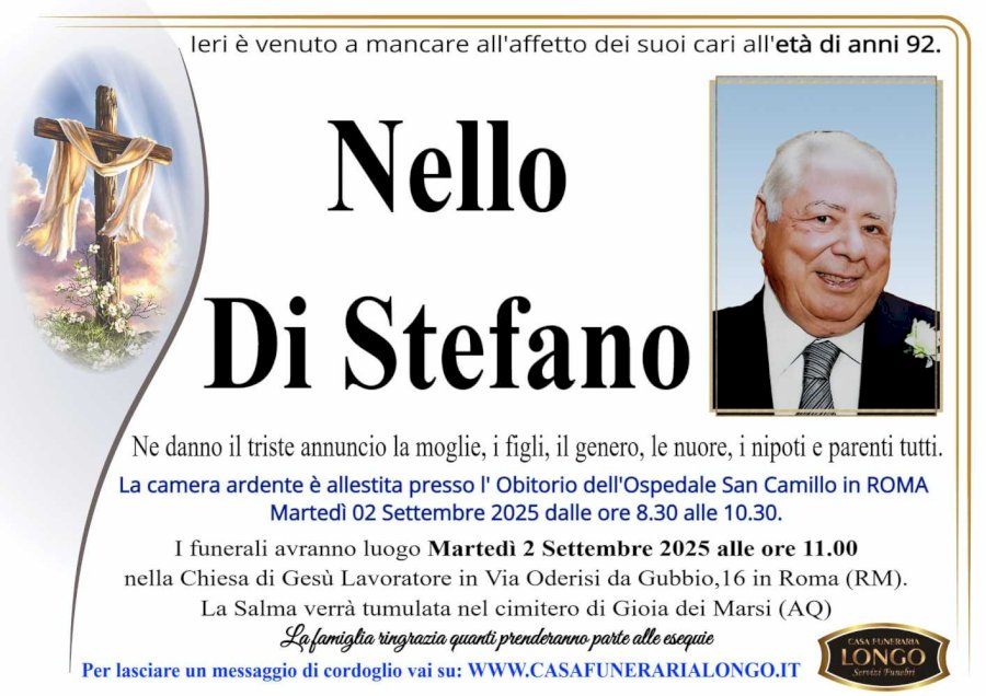 Ne danno il triste annuncio la moglie, i figli, il genero, le nuore, i nipoti e parenti tutti
