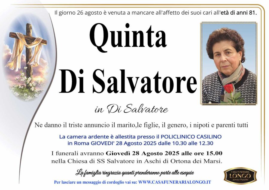 Ne danno il triste annuncio il marito, le figlie, il genero, i nipoti e parenti tutti