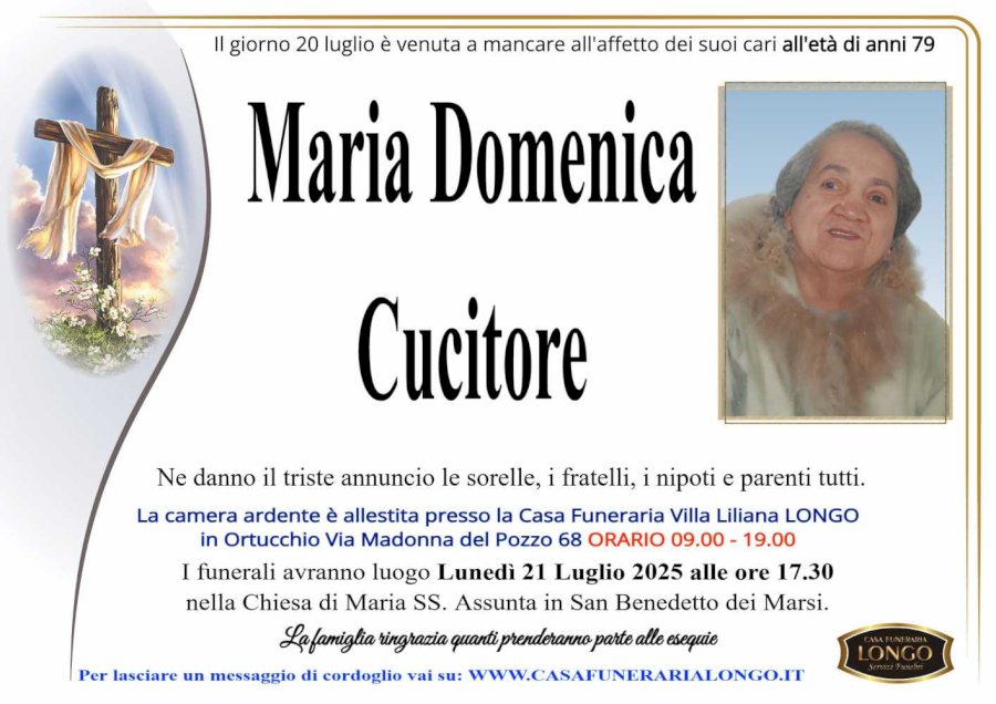Ne danno il triste annuncio le sorelle, i fratelli, i nipoti e parenti tutti