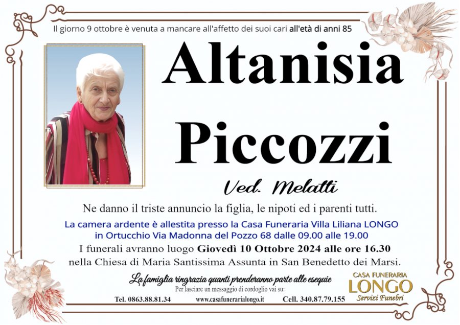 Ne danno il triste annuncio la figlia, le nipoti ed i parenti tutti.